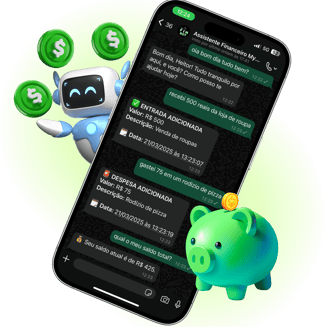 Nosso assistente financeiro utiliza IA para ajudar você a gerir seu dinheiro. Com ele você não precisa mais se preocupar com as finanças!